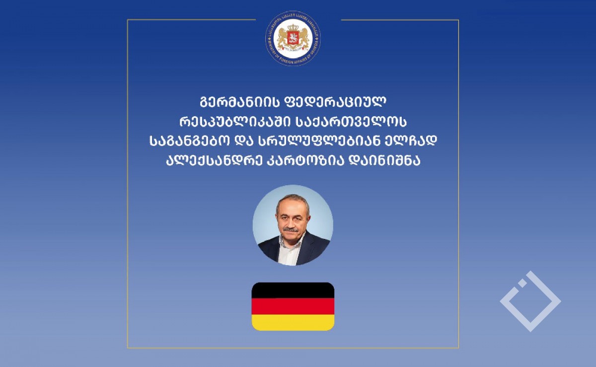 გერმანიის ფედერაციულ რესპუბლიკაში საქართველოს საგანგებო და სრულუფლებიან ელჩად ალექსანდრე კარტოზია დაინიშნა.