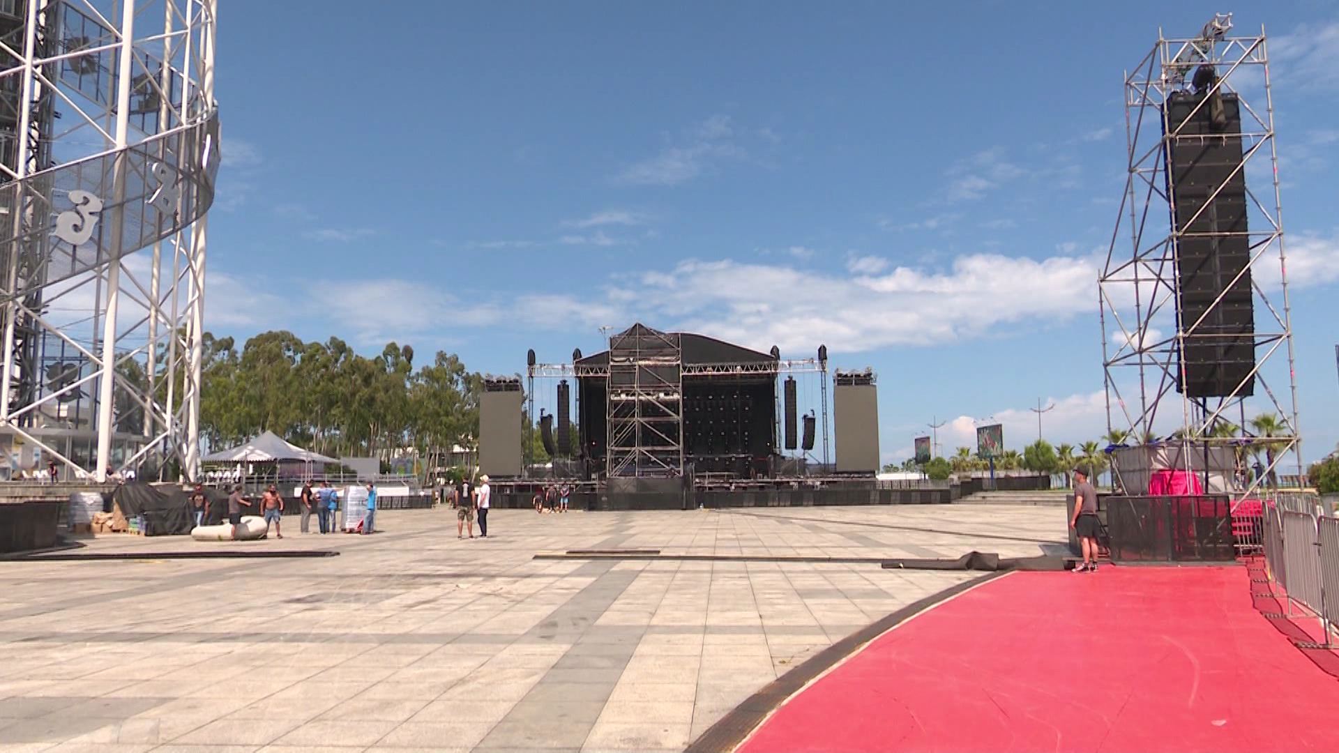 რამდენიმე საათი “მარუუნ ფაიფის” კონცერტამდე. ბათუმური წვიმის მიუხედავად კონცერტისთვის სამზადისი ანბანის კოშკის მიმდებარედ აქტიურად მიმდინარეობს.