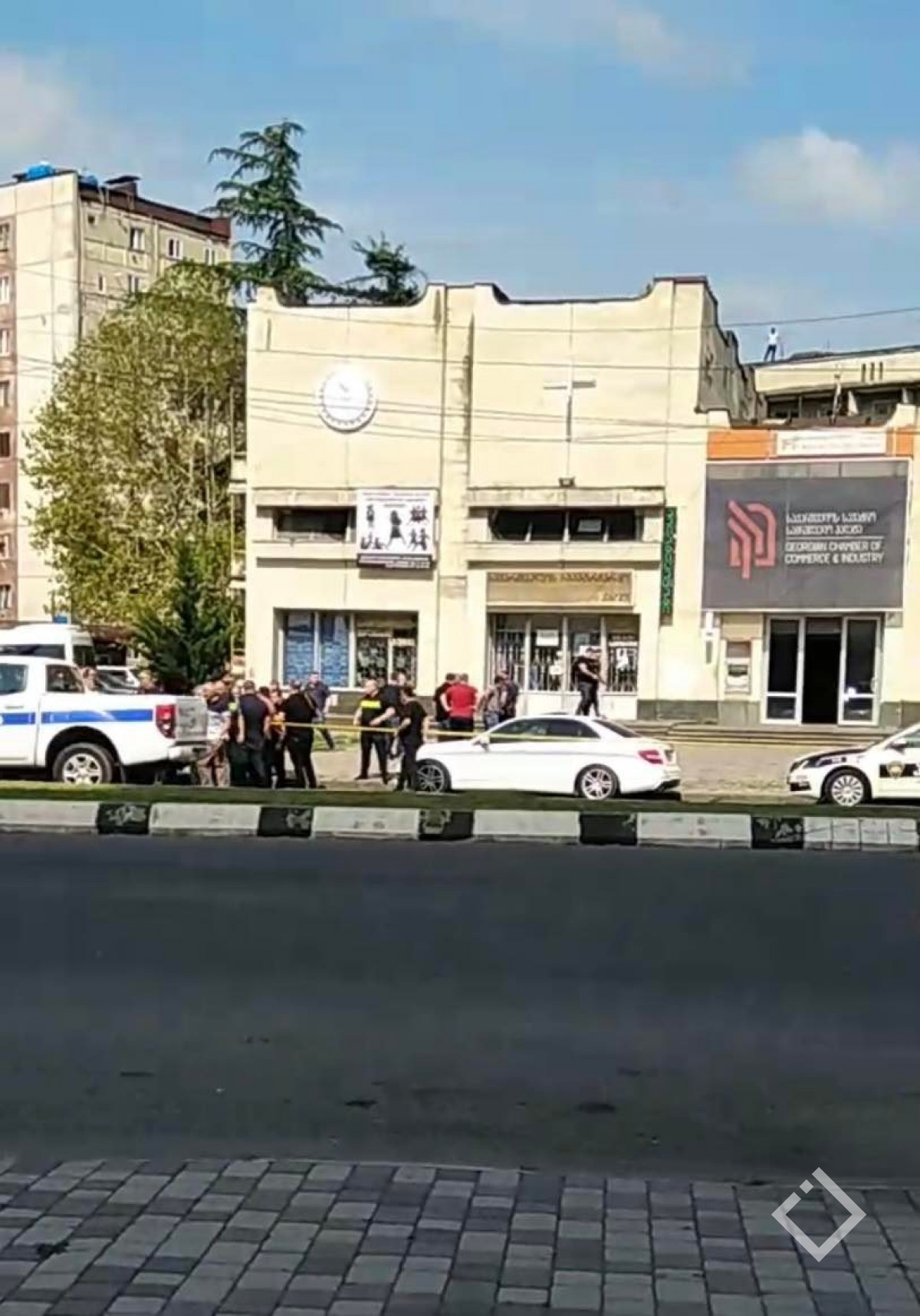 მოქალაქეების თქმით, ბანკში სავარაუდოდ შეიარაღებულ პირს მძევლები ჰყავს აყვანილი.
