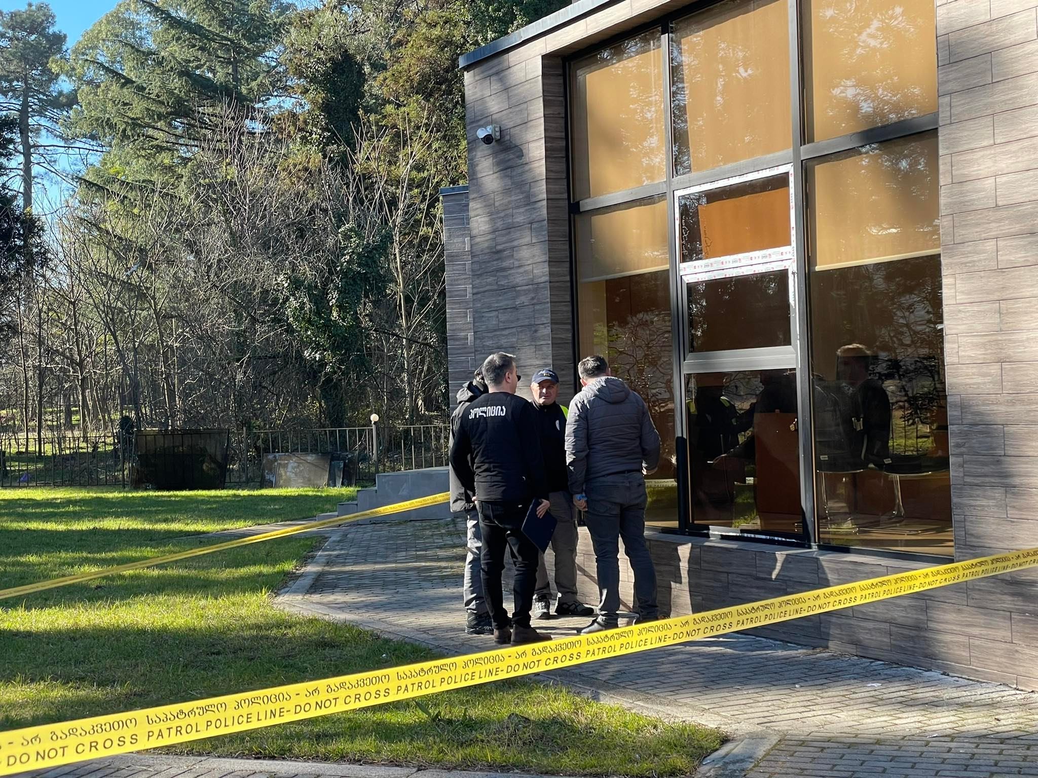 შემთხვევის ადგილას სამართალდამცველები მუშაობენ. ტერიტორია ყვითელი ლენტით არის შემოსაზღვრული.