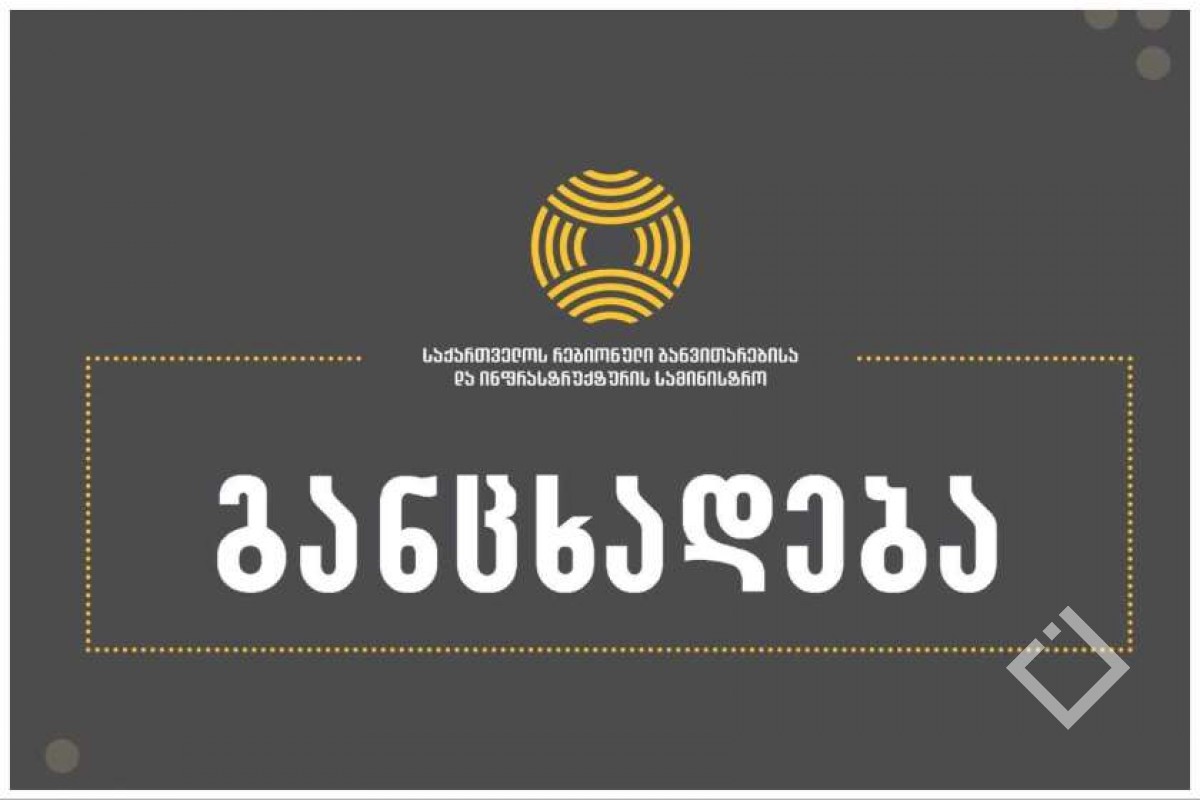 გვსურს, გამოვეხმაუროთ ერთ-ერთი ტელეკომპანიის მიერ მომზადებულ სიუჟეტს, რომელითაც მთავრობის გადაწყვეტილება, მოხდეს უსახური ანდა საფრთხის შემცველი ნაგებობების დემონტაჟი, რეკონსტრუქცია, აღდგენა, საზოგადოების შეცდომაში შეყვანის მიზნით, ნეგატიურ კონტექსტშია წარმოჩენილი, – ამის შესახებ რეგიონული განვითარებისა და ინფრასტრუქტურის სამინისტროს განცხადებაშია აღნიშნული.