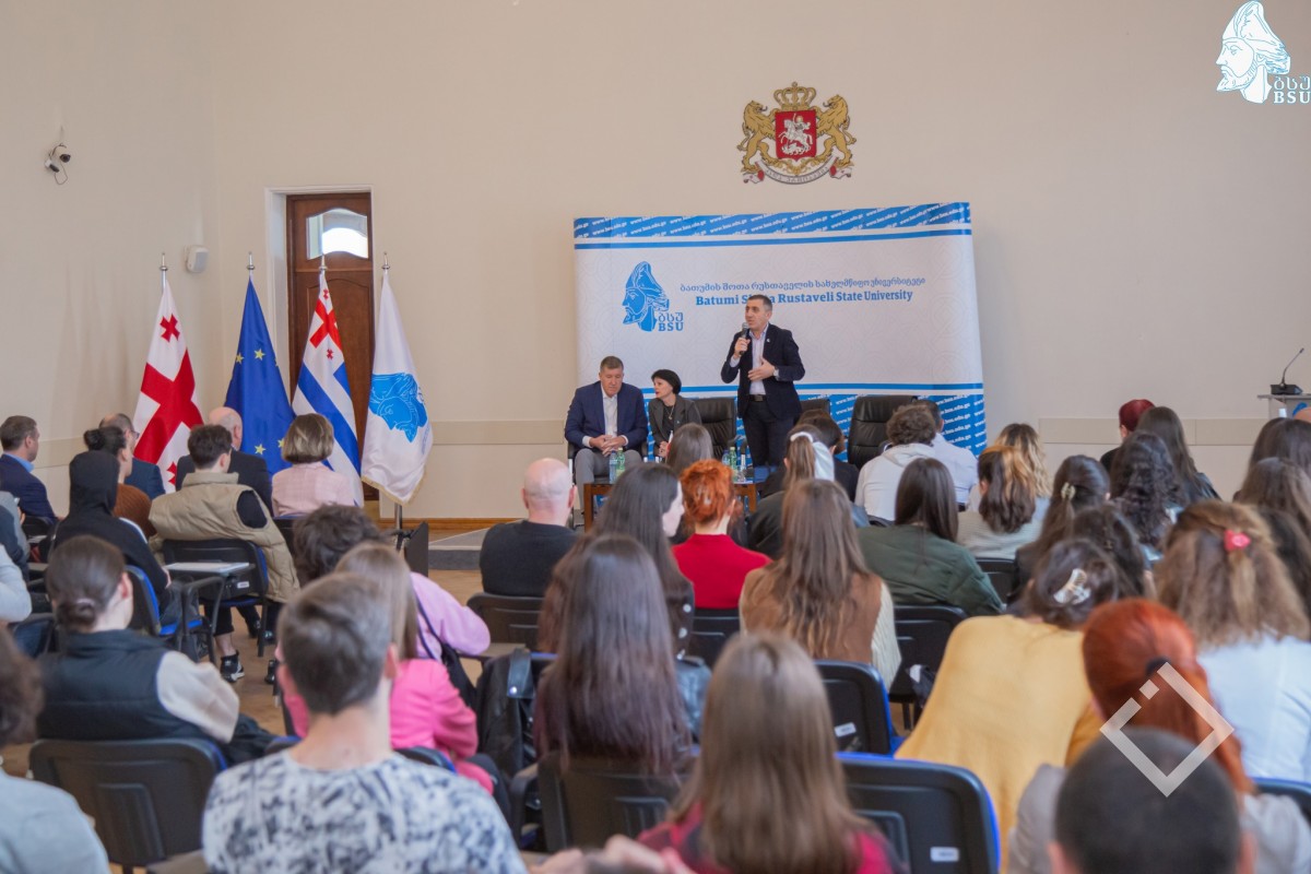 „შეხვედრა კითხვა-პასუხის რეჟიმში წარიმართა და აშშ-ის თავდაცვის ატაშემ ჯოზეფ ბილბომ სტუდენტების აქტუალურ შეკითხვებს უპასუხა.