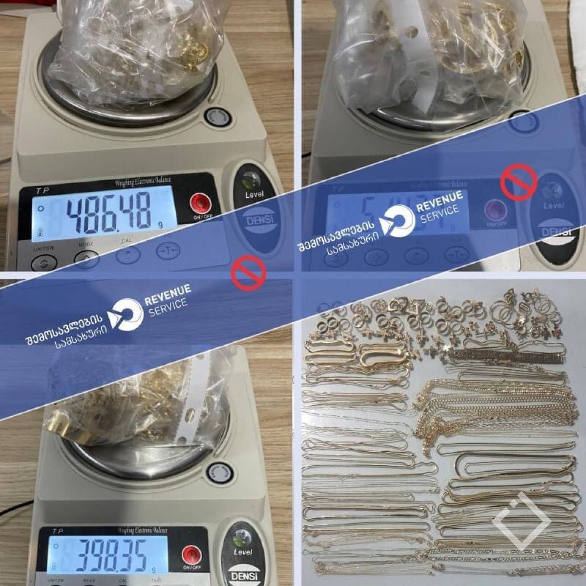 უწყების ინფორმაციით, მებაჟე ოფიცრებმა, საქართველოს მოქალაქეების ნ.დ.-ს, ი.კ.-სა და რ.ი.-ს ეჭვის საფუძველზე, სხეულის რენტგენო სკანერით დათვალიერების შედეგად, არადეკლარირებული ოქროს (საერთო ჯამი: 1384 გრამი) საიუველირო ნაკეთობები გამოავლინეს.
