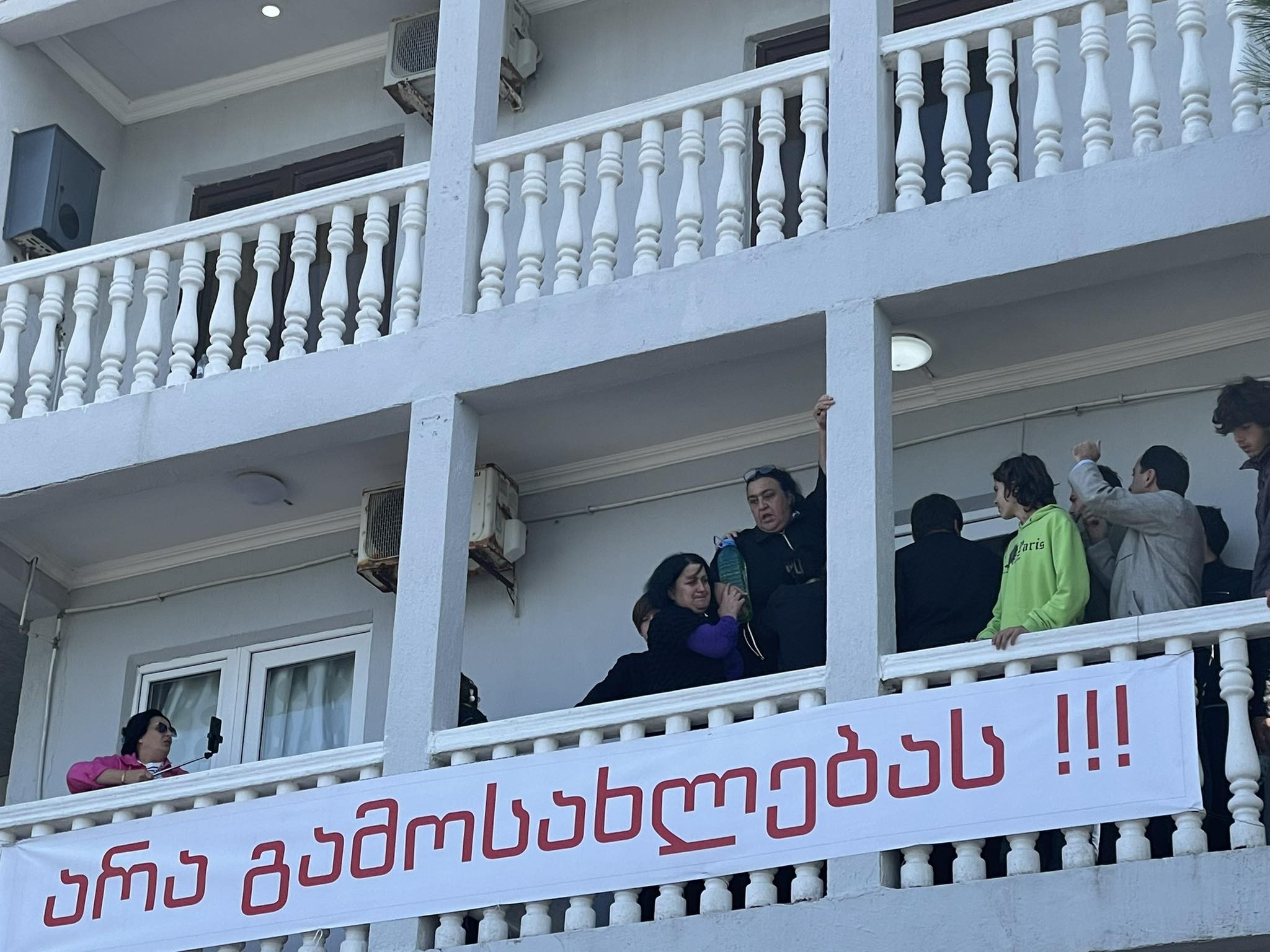 ოჯახის ახლობლებს გადაკეტილი აქვთ სახლის შესასვლელი და აღსრულების ბიუროს წარმომადგენლებს შესვლის საშუალებას არ აძლევენ.