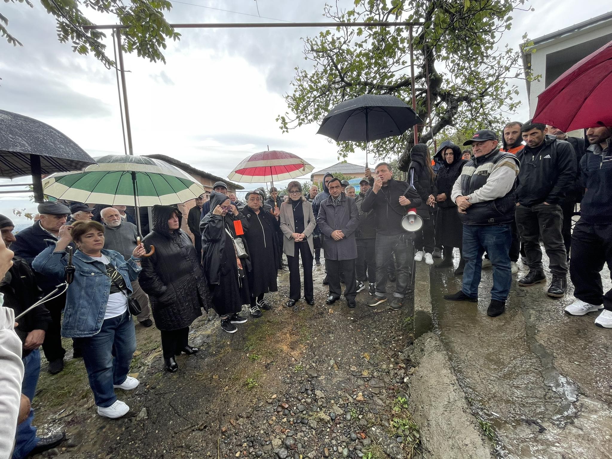 ანთაძეების ოჯახის მხარდასაჭერად ადგილზე უფლებადამცველები და ოჯახის ახლობლები იმყოფებიან.