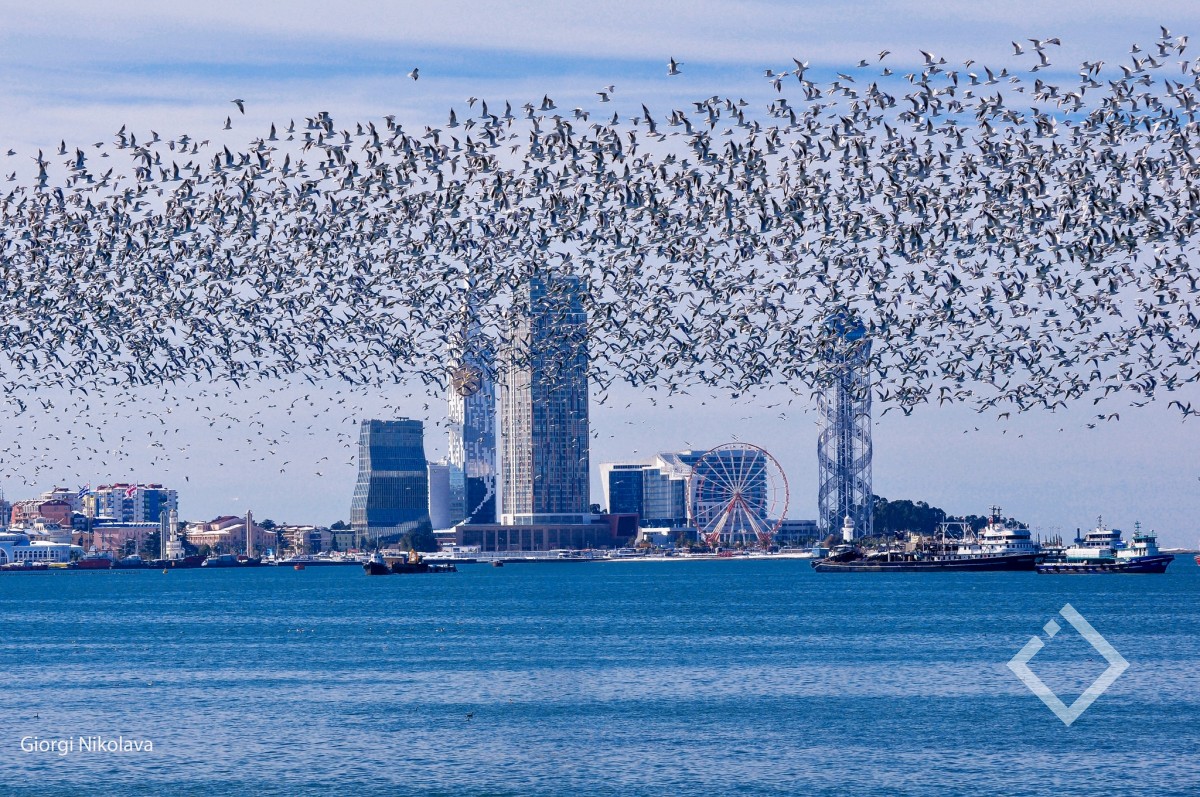 თოლიები ბათუმში, შავი ზღვის სანაპიროზე.