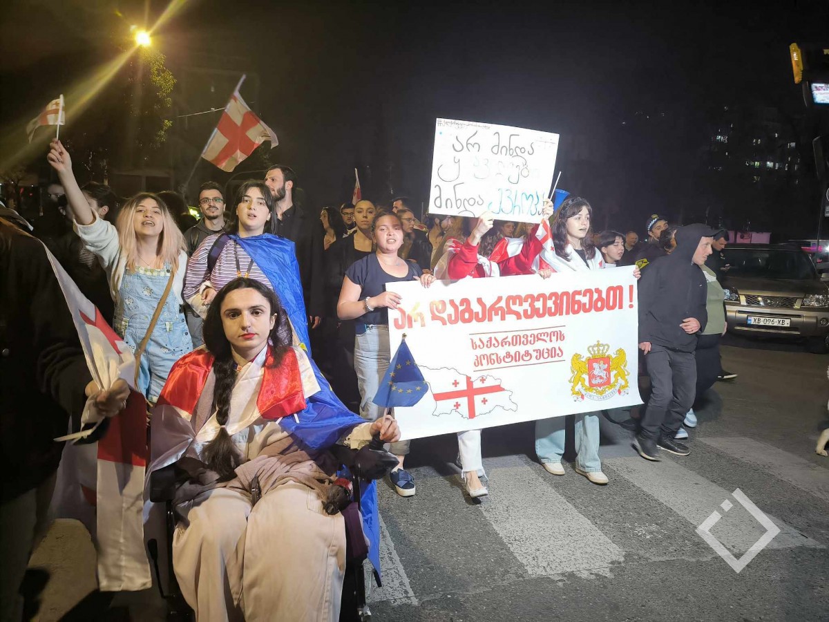 აქციის მონაწილეების მოთხოვნა უცვლელია - "უცხოური გავლენის გამჭვირვალობის შესახებ კანონპროექტის" საკანონმდებლო ორგანოდან გამოთხოვნა.
