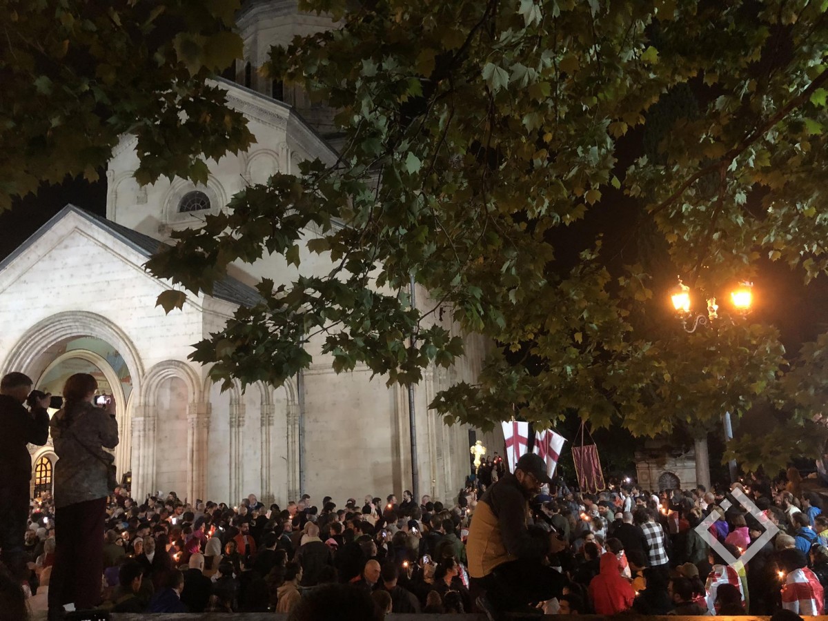 აქციის მონაწილეები ტაძარში მყოფ მრევლს შეუერთდნენ. ესწრებიან სააღდგომო ლიტურგიას და ერთად შეხვდნენ აღდგომის ბრწყინვალე დღესასწაულს.