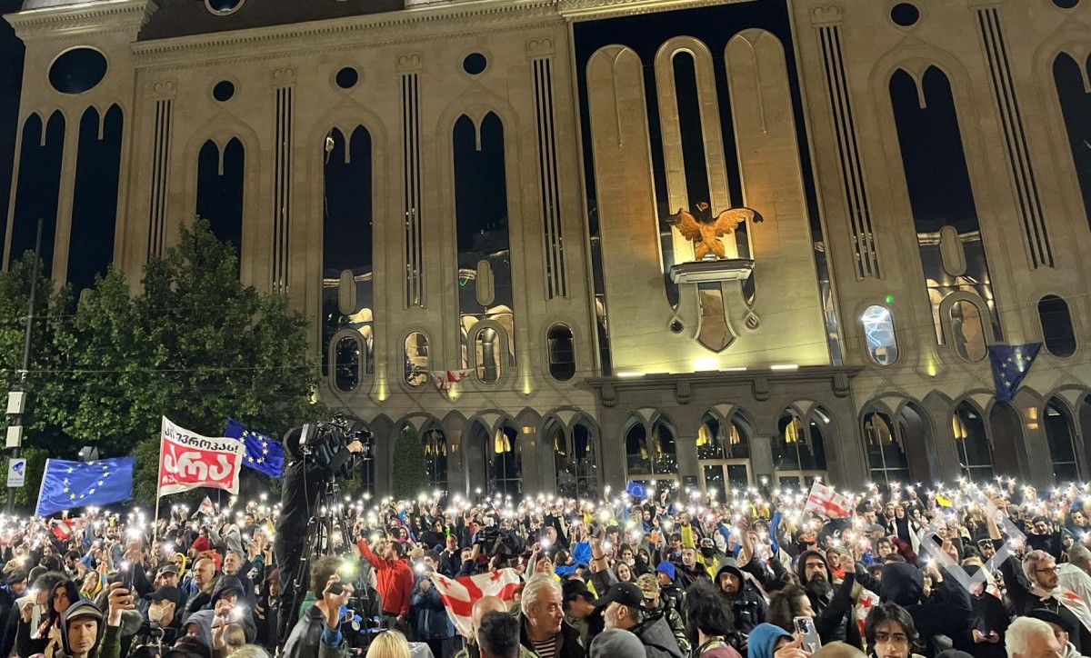 პარლამენტთან „უცხოური გავლენის გამჭვირვალობის“ კანონპროექტის წინააღმდეგ აქცია მშვიდობიანად მიმდინარეობს.