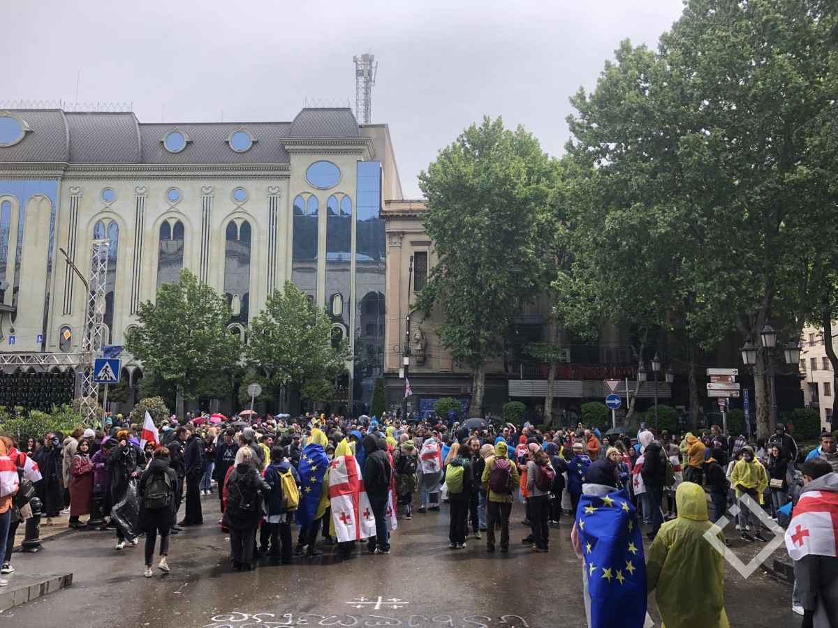 ამ დროისთვის, „უცხოური გავლენის გამჭვირვალობის შესახებ“ კანონპროექტის მოწინააღმდეგე მოქალაქეები როგორც პარლამენტის წინ, ასევე გვერდითა შესასვლელებთან რჩებიან.