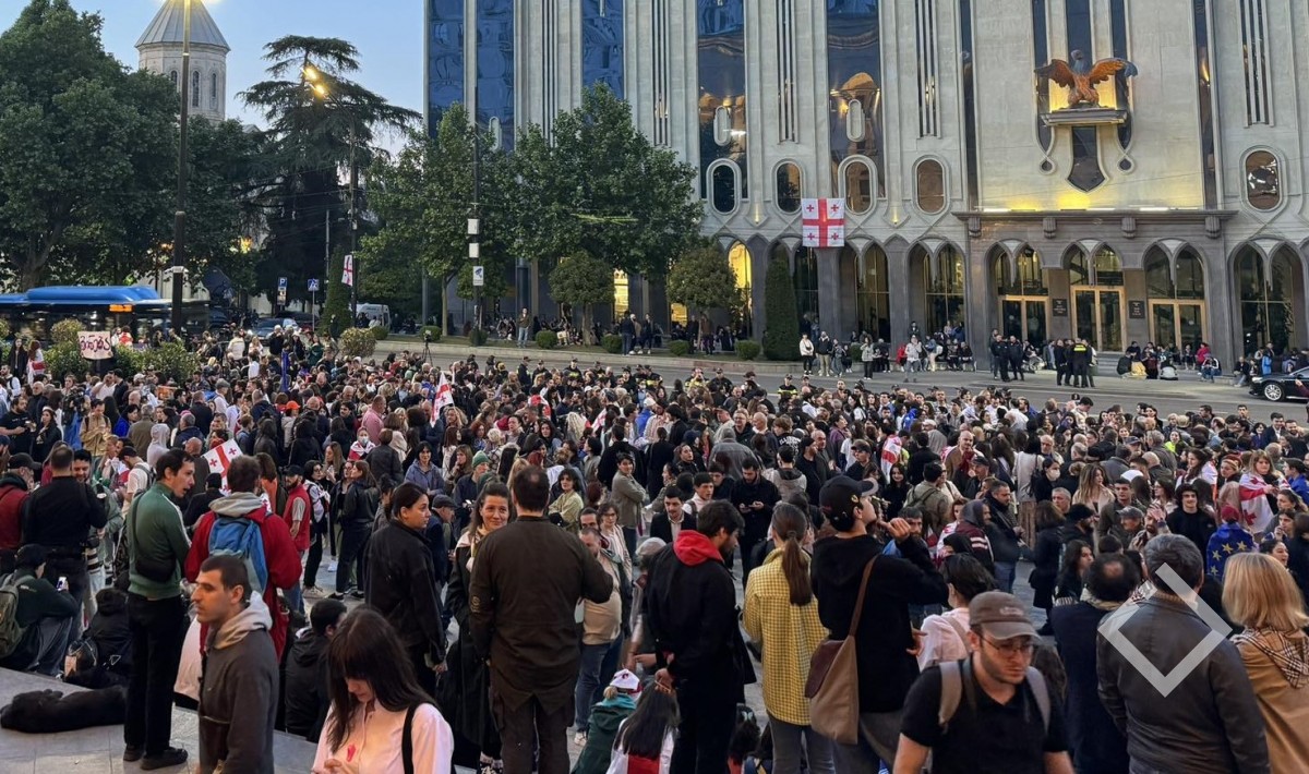 პარლამენტთან აქცია გრძელდება. საკანონმდებლო ორგანოსთან "უცხოური გავლენის გამჭვირვალობის შესახებ" კანონის მოწინააღმდეგეები არიან შეკრებილები.