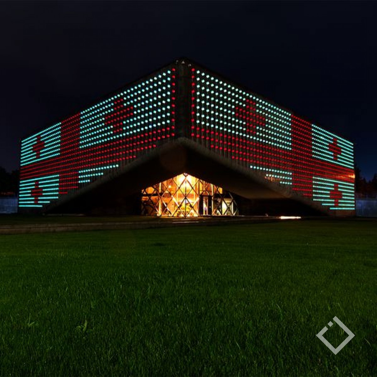 საქართველოს დამოუკიდებლობის დღესთან დაკავშირებით, ეროვნული ბანკის საკასო ცენტრი სახელმწიფო დროშის ფერებში განათდა.