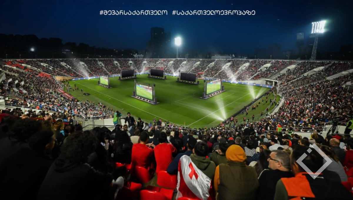 მაყურებელს, პირდაპირი რეპორტაჟის ნახვა, მინდორზე ყველა კუთხეში დამონტაჟებული ეკრანების საშუალებით შეეძლებათ. ეროვნული გუნდის ჯგუფური ეტაპის სამივე მატჩის პირდაპირ ტრანსლაციას ექსკლუზიურად საქართველოს პირველი არხი შემოგვთავაზებს.