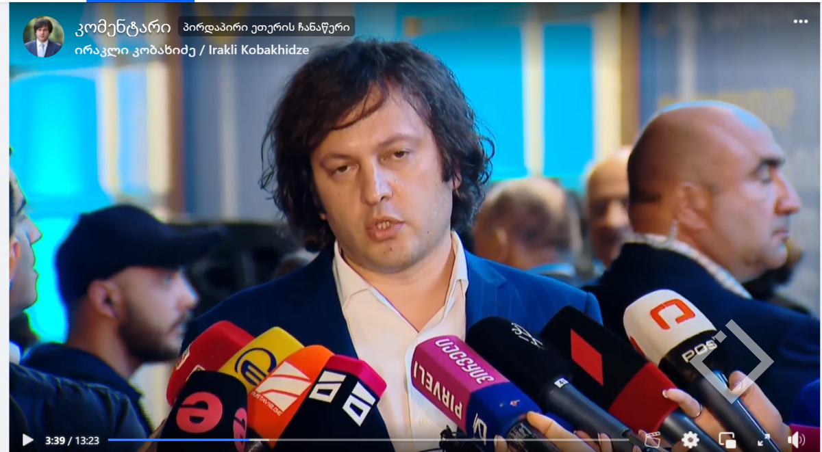 „დეტალურად განვმარტე, რაც, მაგალითად, შეეხებოდა „პივიტის“ გაყალბებას. საელჩომ არასწორი ინფორმაცია გაავრცელა იმასთან დაკავშირებით, თითქოს ცდომილება „პივიტისა“ და ცესკო-ს შედეგებს შორის იყო მხოლოდ 1.8, როდესაც სინამდვილეში იყო 2.4 პროცენტი. მეორე მანიპულაცია მდგომარეობდა იმაში, რომ სინამდვილეში ამ 2.4 პროცენტით რეალურად „ისფედი“ (ISFED) ბრალს სდებდა „ქართულ ოცნებას“ 46 000 ხმის გაყალბებაში და საელჩომ ამას უწოდა რაღაც უმნიშვნელო ხარვეზი. ეს არ იყო უმნიშვნელო ხარვეზი. შეგახსენებთ, რომ ეს იყო უხეში ბრალდება. ჩვენ გვაბრალებდა ამერიკული დაფინანსებით მოქმედი არასამთავრობო ორგანიზაცია არჩევნების გაყალბებას 46 000 ხმით და ეს იქცა მთავარ საბაბად ოპოზიციისთვის, რომ ეცადათ ხელისუფლების შეცვლა ხალხის ნების წინააღმდეგ, რიგგარეშე არჩევნების ჩატარება და ამას საელჩო უწოდებს უმნიშვნელო შეცდომას. ეს, რა თქმა უნდა, სიცრუეა და მე კიდევ ერთხელ ვთხოვდი ქალბატონ ელჩს, ჩვენ საჯაროდ ვისაუბრეთ ამასთან დაკავშირებით, თუ საჭირო იქნება, პირადადც გავუზიარებ ელჩს ჩემს მოსაზრებებს ამასთან დაკავშირებით. ჯერჯერობით გადართული ვართ საარჩევნო პროცესებზე, თუ იქნება საჭიროება, რა თქმა უნდა, ნებისმიერ დროს“, – განაცხადა ირაკლი კობახიძემ.
