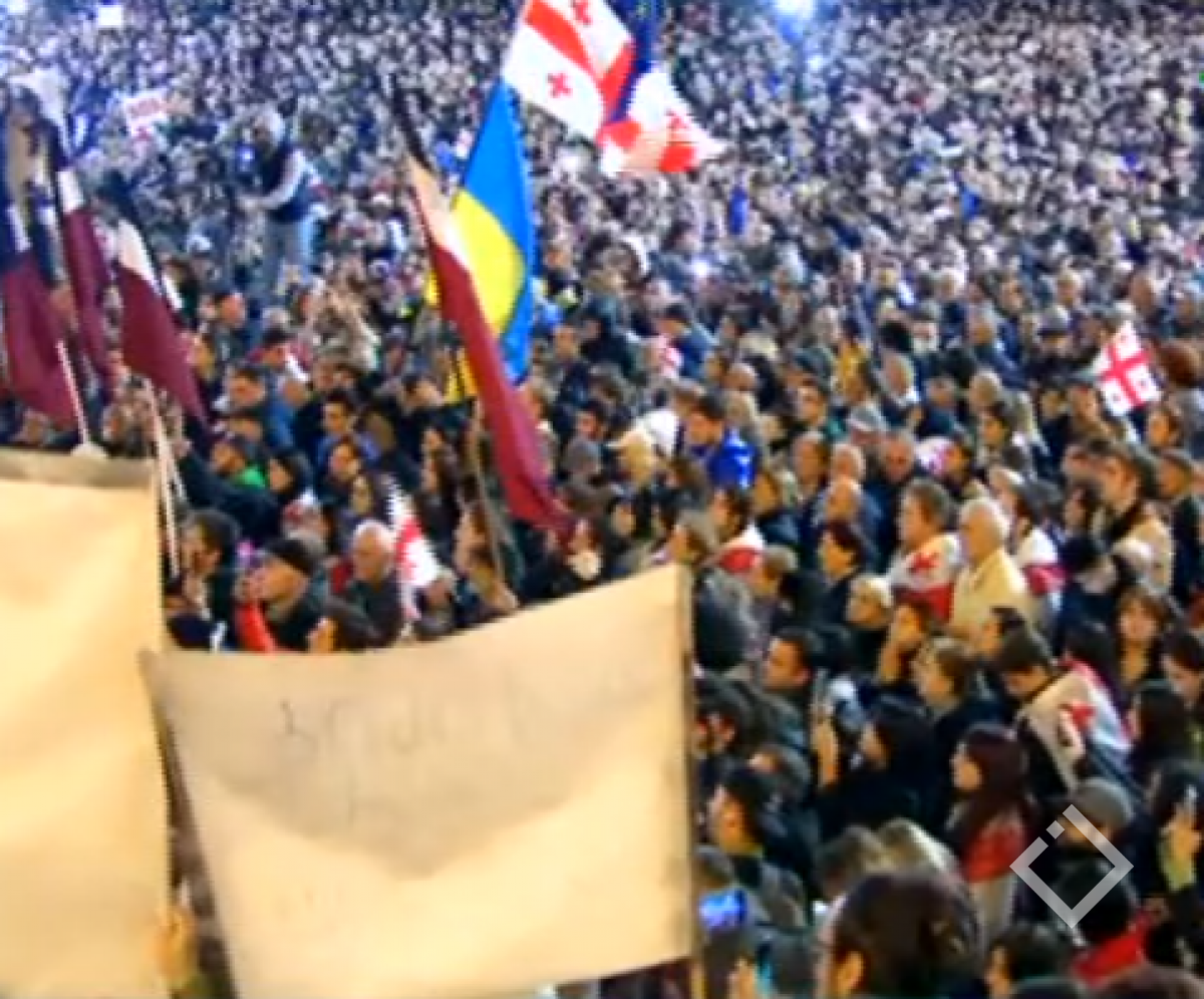 თბილისში, რუსთაველის ქუჩაზე საპროტესტო აქცია მიმდინარეობს