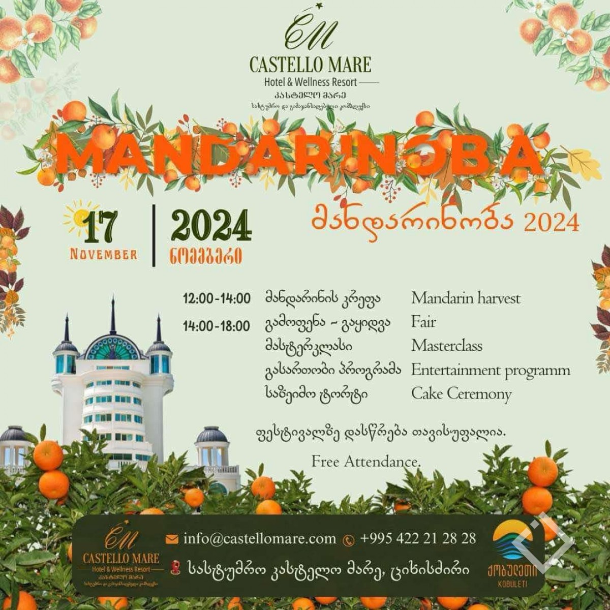 უამინდობის გამო, ფესტივალი "მანდარინობა", მხოლოდ, 17 ნოემბერს ჩატარდება.