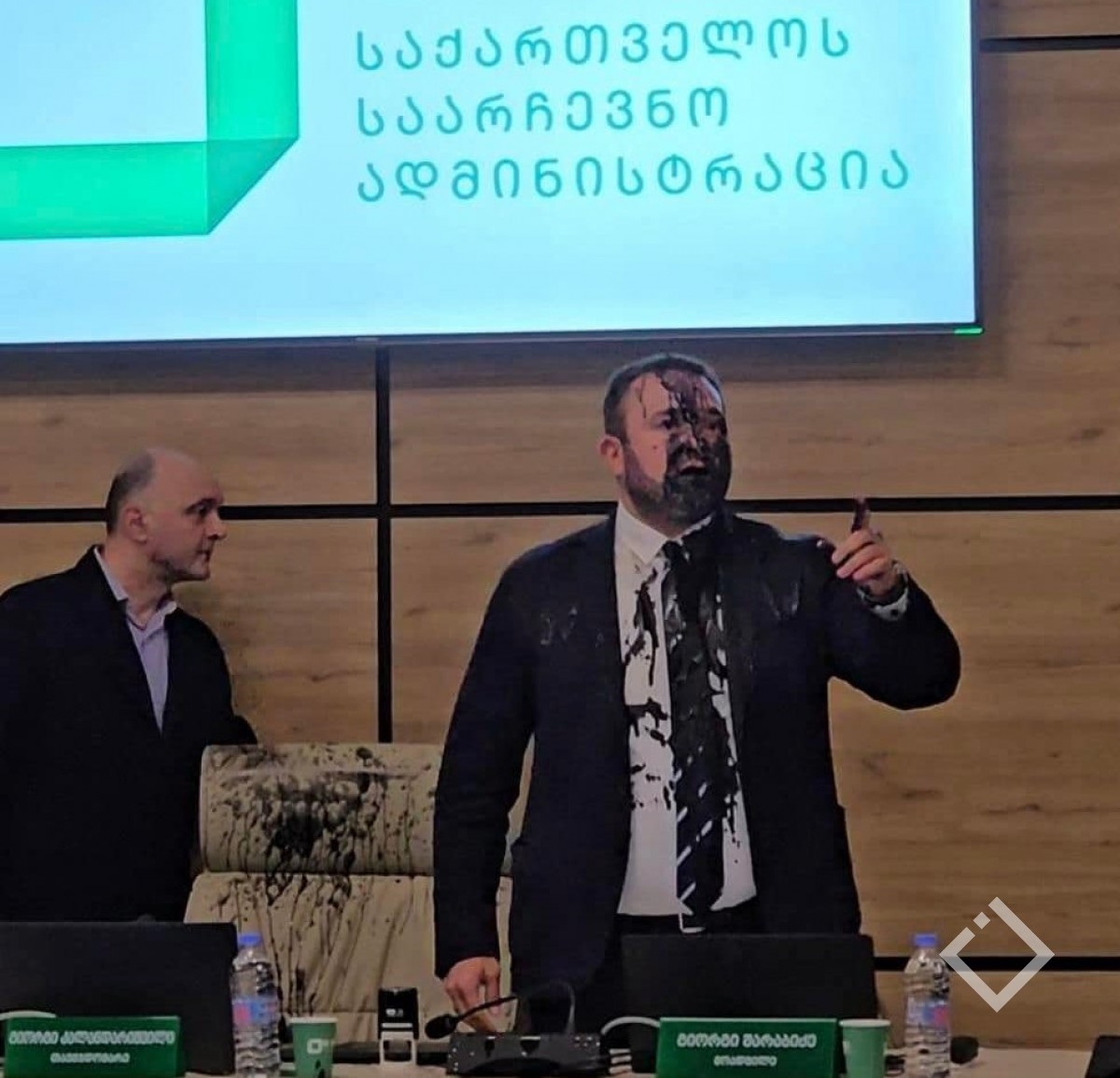 ცენტრალური საარჩევნო კომისიის სხდომაზე, სადაც არჩევნების შედეგებს აჯამებდნენ, ცესკოში „ერთიანობა - ნაციონალური მოძრაობის” წარმომადგენელმა დავით კირთაძემ ცესკო-ს თავმჯდომარე, გიორგი კალანდარიშვილს "შავი ლაქა" უწოდა და საღებავი შეასხა.