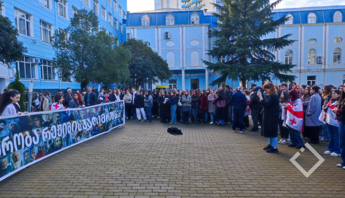 ბსუ-ს ეზოში საპროტესტო აქცია მიმდინარეობს. სტუდენტებმა სიმბოლურად დაწვეს ფურცლები, წარწერით "დიპლომი".