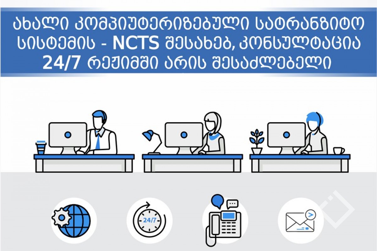 უშუალოდ NCTS-ის სისტემის ეფექტურად მუშაობის უზრუნველყოფის მიზნით, წინასწარ გადამზადებული თანამშრომლების პროფესიონალი გუნდის მიერ ხორციელდება დაინტერესებული პირებისთვის პროცედურულ საკითხებსა და მიმდინარე პროცესებზე კვალიფიკაციური კონსულტაციის გაწევა. მათ შორის 24/7 რეჟიმში არის შესაძლებელი ე.წ. HELP DESK-ით მომსახურება“, – ნათქვამია შემოსავლების სამსახურის ინფორმაციაში.