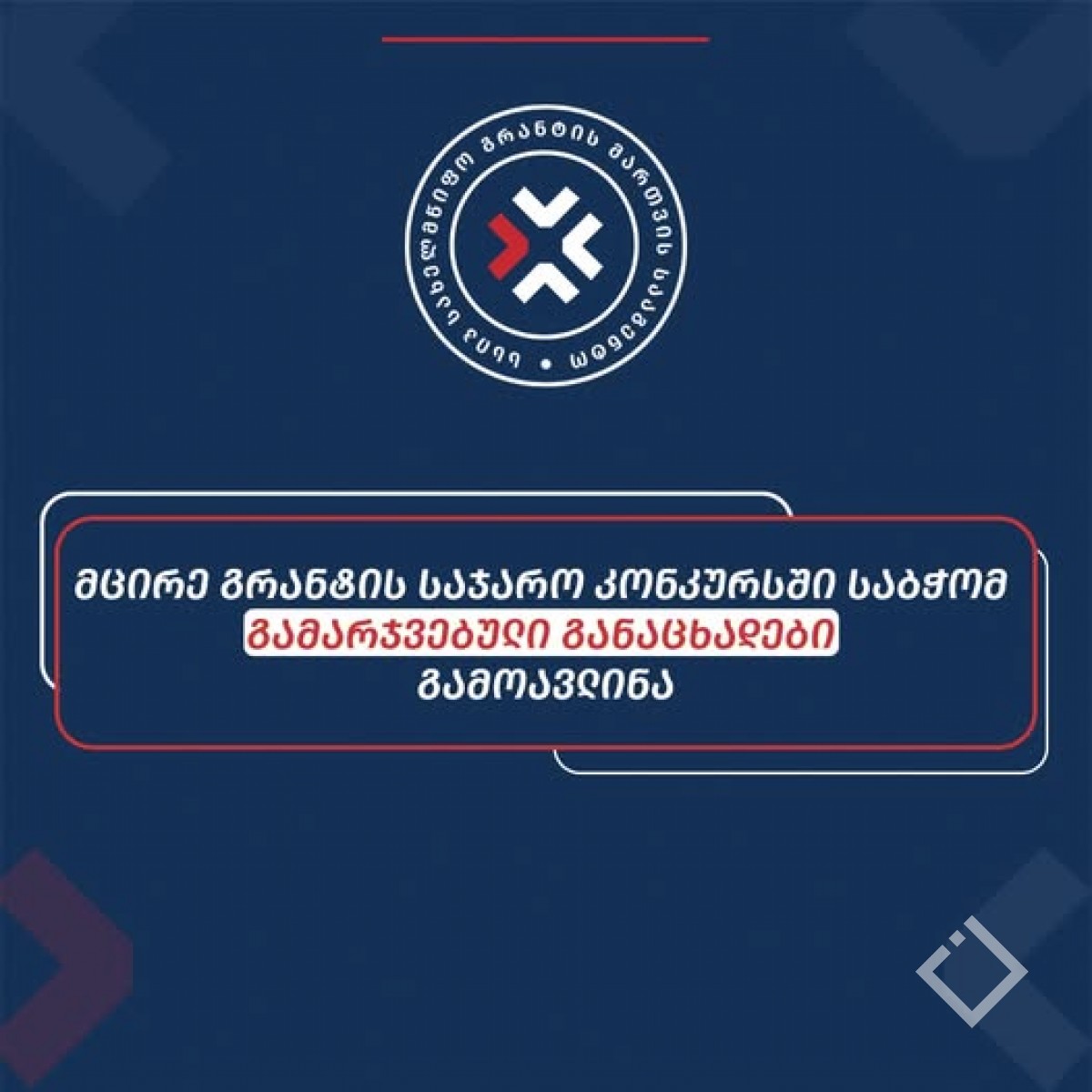 გამარჯვებული განაცხადების შესახებ ინფორმაცია იხილეთ ლინკზე: https://shorturl.at/F1gGP