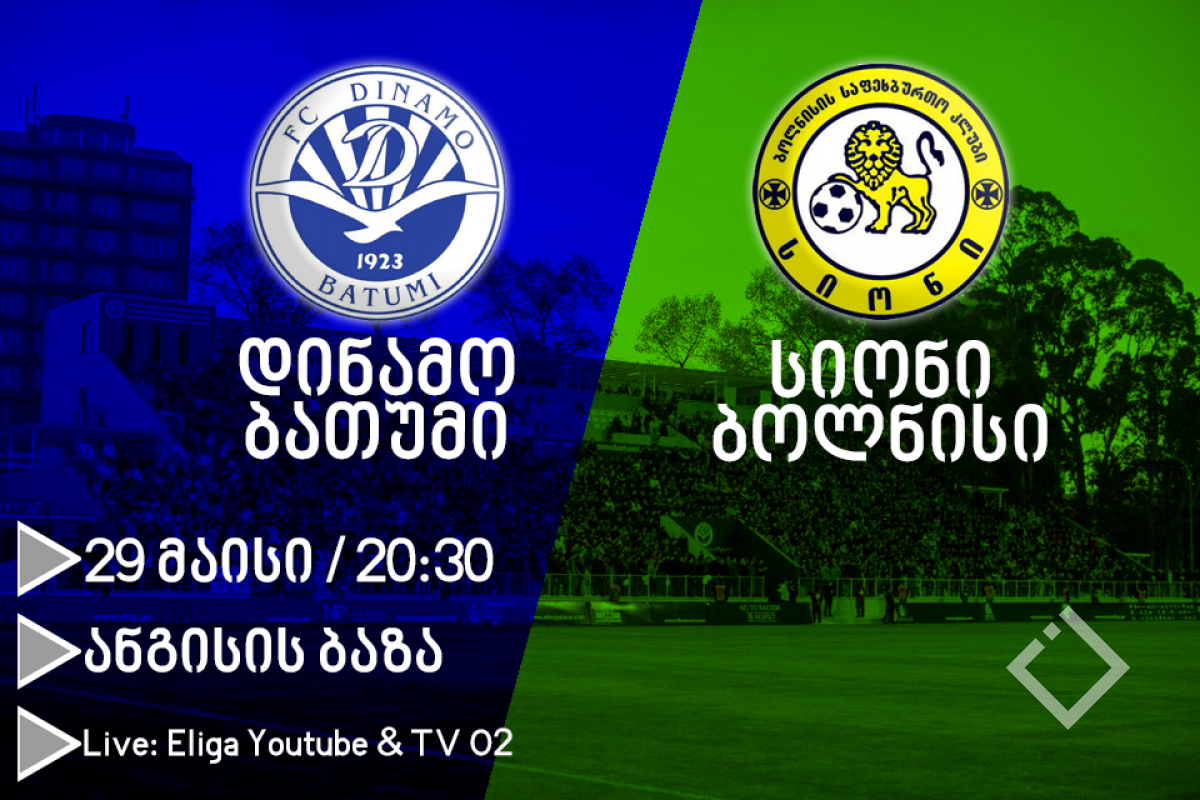 ეროვნული ლიგის მე-16 ტურში ბათუმის ''დინამო'' ბოლნისის ''სიონს'' უმასპინძლებს. თამაში დღეს, 29 მაისს, 20:30 საათზე დაიწყება. მატჩი ბათუმში, ანგისის ბაზაზე გაიმართება.