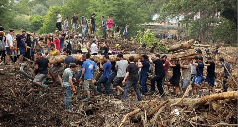 სტიქიის სალიკვიდაციო სამუშაოებში ათასობით ახალგაზრდა ჩაერთო. შიშველი ხელებით, ნიჩბებითა თუ ხელთათმანებით შეიარაღებულმა მოხალისეებმა დატბორილი ტერიტორიების გაწმენდა დაიწყეს.