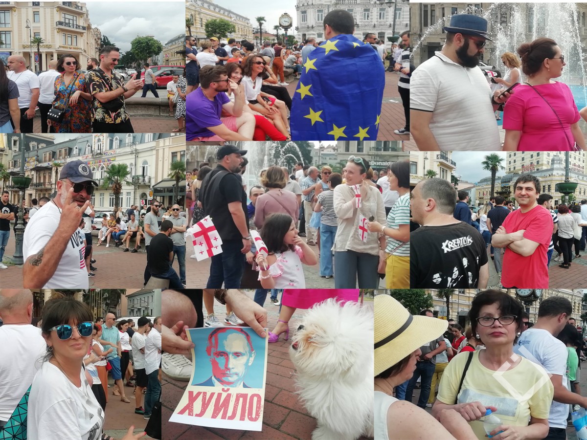 ''სირცხვილია'', ''რუსეთი ოკუპანტია'', ''რა დამავიწყებს 08:08.2008,'' „რუსეთუმეებო ყარხართ“, ''არა რუსეთს'' - ბათუმში ევროპის მოედანზე საპროტესტო აქცია მიმდინარეობს.