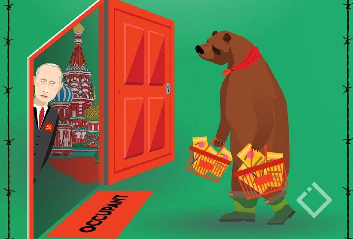 ორგანიზაცია ფოტოსაც აქვეყნებს, რომელზეც რუსეთის პრეზიდენტის, ვლადიმერ პუტინის კარიკატურაა და აწერია ოკუპანტი.