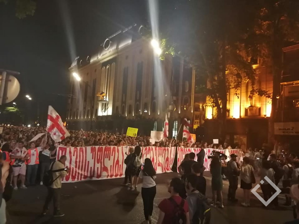 რუსთაველის გამზირზე შეკრებილები ითხოვენ - გადადგეს შინაგან საქმეთა მინისტრი გიორგი გახარია, არჩევნები პროპორციული სისტემით ცატარდეს, გათავისუფლდნენ 20 ივნისს დაკავებულები, ხოლო პოლიციელები, რომლებმაც აქციის დარბევისას ფიზიკური ზიანი მიაყენეს მოქალაქეებს, პასუხისგებაში მიეცნენ.