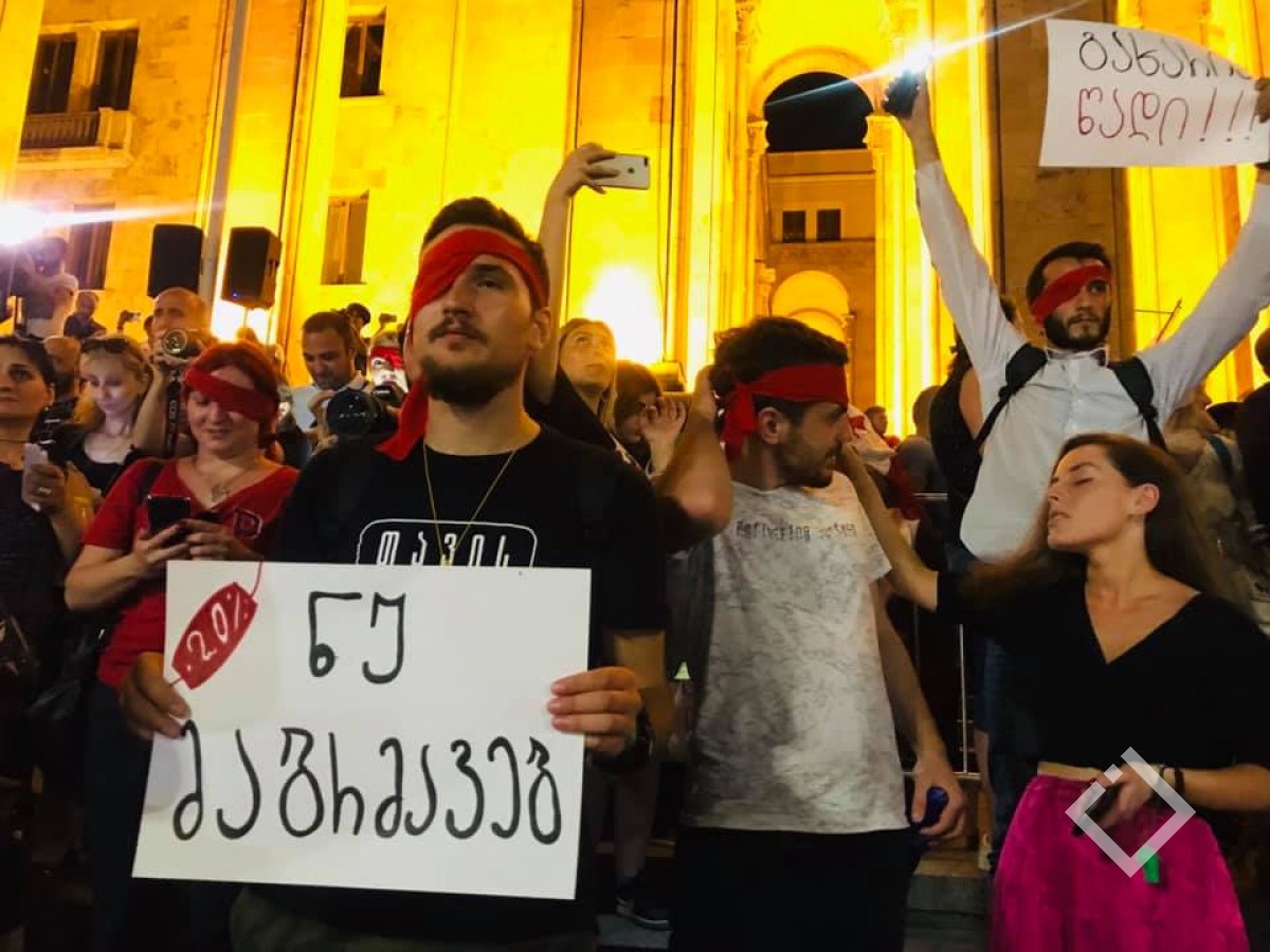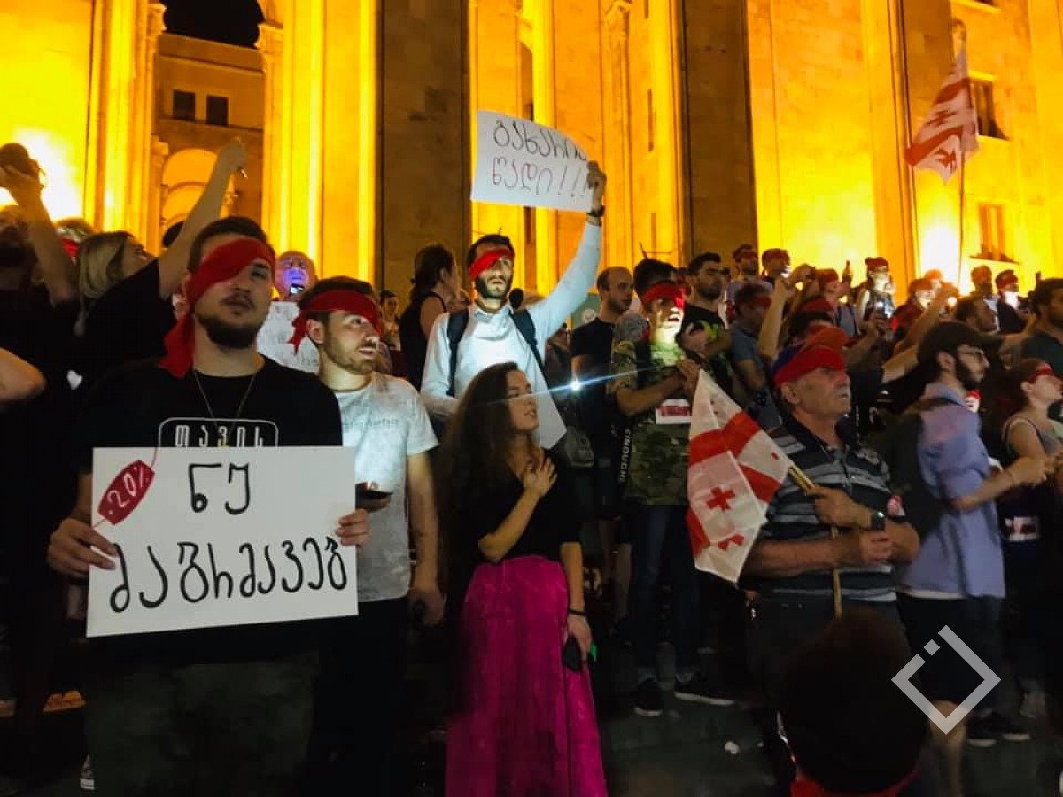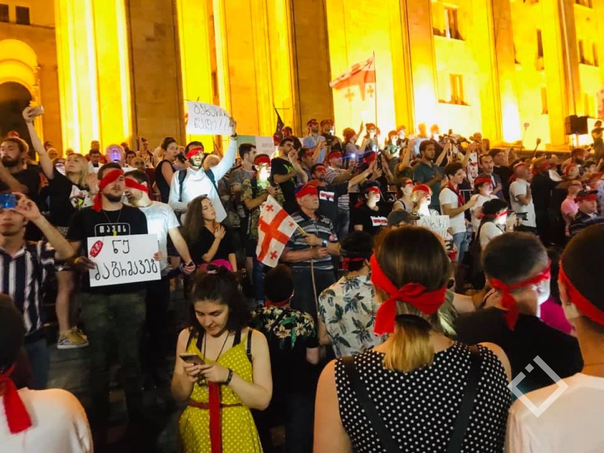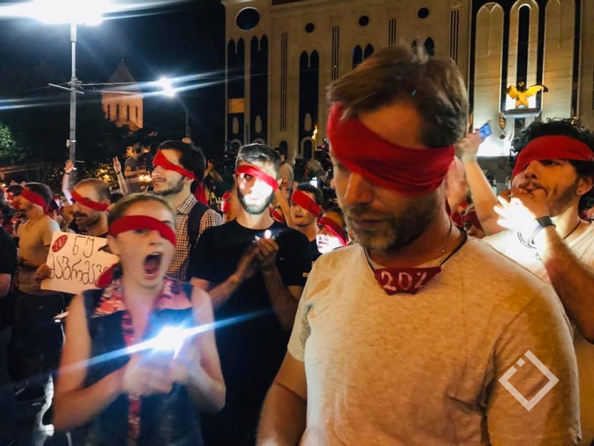 თვალახვეულმა დემონსტრანტებმა საქართველოს ჰიმნი იმღერეს.