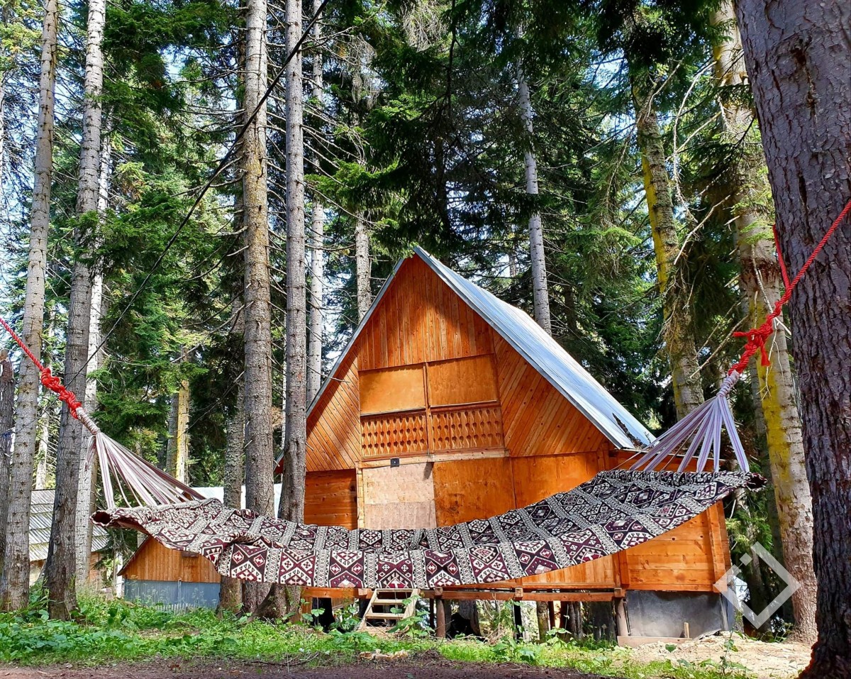 ხეებს შორის, მრავლადაა სოკოების მსგავსად შიგადაშიგ ამოსული მწვანე, წითელი თუ ცისფერი სახურავების ხის კოტეჯები.