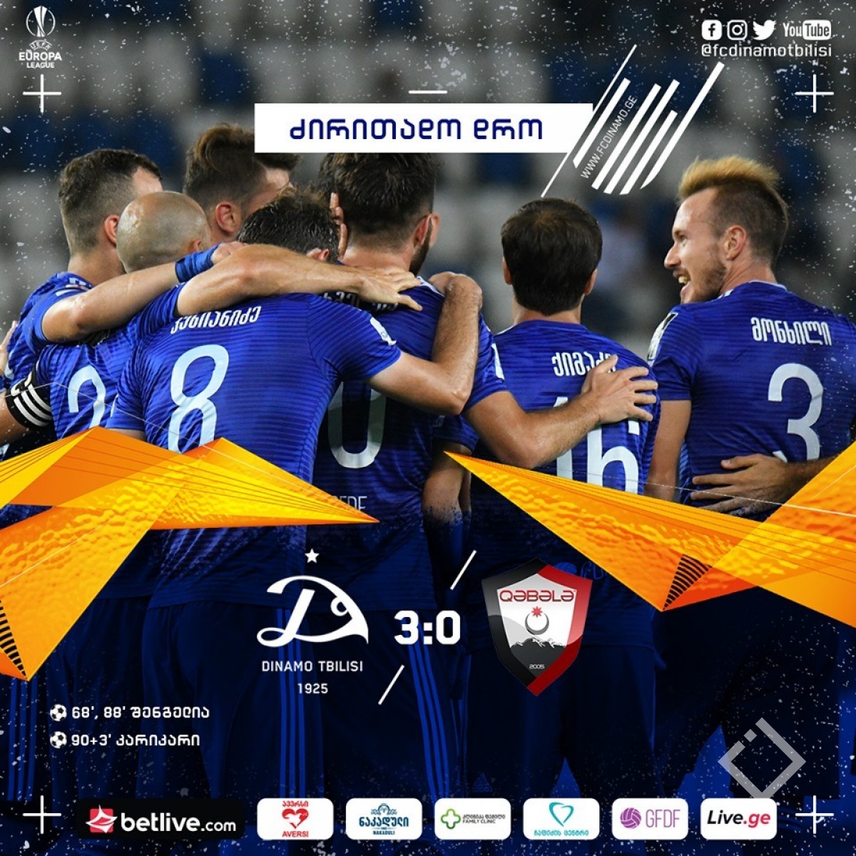 მესამე საკვალიფიკაციო ეტაპზე გასვლა მოახერხა თბილისის ,,დინამომ’’. დედაქალაქელებმა ''დინამო არენაზე’’ აზერბაიჯანული ,,გაბალა’’ მიიღეს და 3-0 დაამარცხეს. 68-ე წუთზე ლევან შენგელიამ ანგარიში გახსნა. 88-ე წუთზე შენგელიამ დუბლი გაიფორმა და ,,დინამო’’ ორბურთიანი სხვაობით წინ გაიყვანა. 93-ე წუთზე თბილისელთა ლეგიონერმა კვამე კარიკარმა მესამე გოლი გაიტანა და საბოლოო ანგარიში დააფიქსირა. ,,დინამომ’’ ორი მატჩის ჯამში ,,გაბალა’’ 5-0 დაამარცხა და შემდეგ ეტაპზე 8 აგვისტოს ჰოლანდიაში ,,ფეინოორდს’’ დაუპირისპირდებიან.