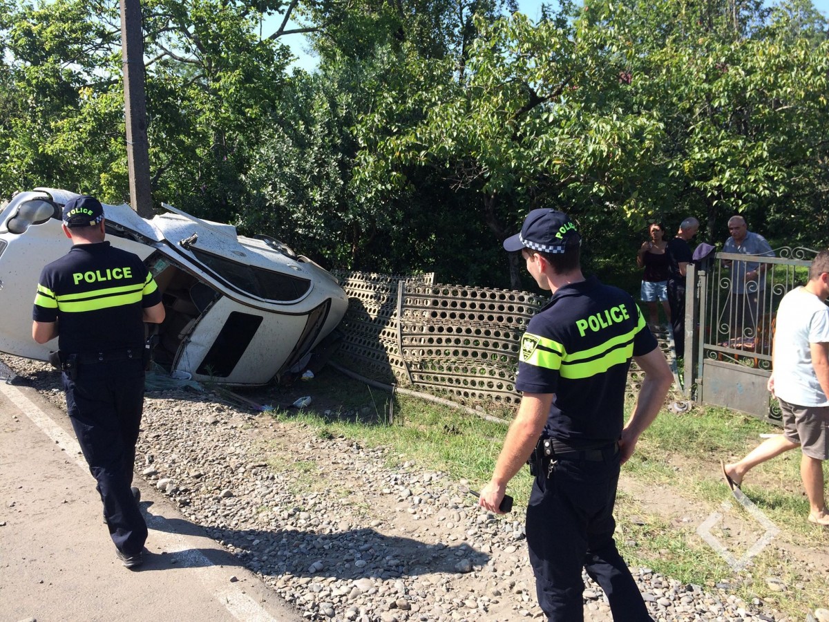 ლანჩხუთში ავტომობილი გზის სავალი ნაწილიდან დაგავიდა და ამობრუნდა-არიან დაშავებულები