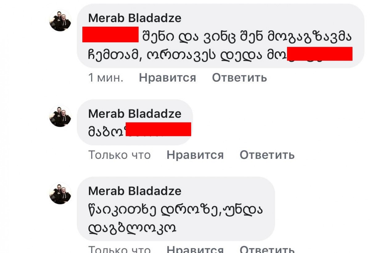 უმაღლესი საბჭოს დეპუტატმა "პატრიოტთა ალიანსიდან", მერაბ ბლადაძემ სოციალურ ქსელში მოქალაქეს შეურაცხყოფა მიაყენა და აგინა, შემდეგ კი ბილწსიტყვაობის შემცველი კომენტარები წაშალა. სტატუსი საკუთარ ფბ გვერდზე ჰქონდა გამოქვეყნებული, სადაც ერთ-ერთი მომხმარებელი ქალი პოლემიკაში შევიდა.