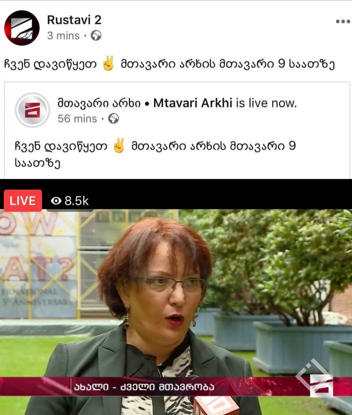 რუსთავი2-ის ფბ გვერდზე „მთავარი არხის“ პირველი საინფორმაციო გამოშვების პირდაპირი ეთერი გადააზიარეს.