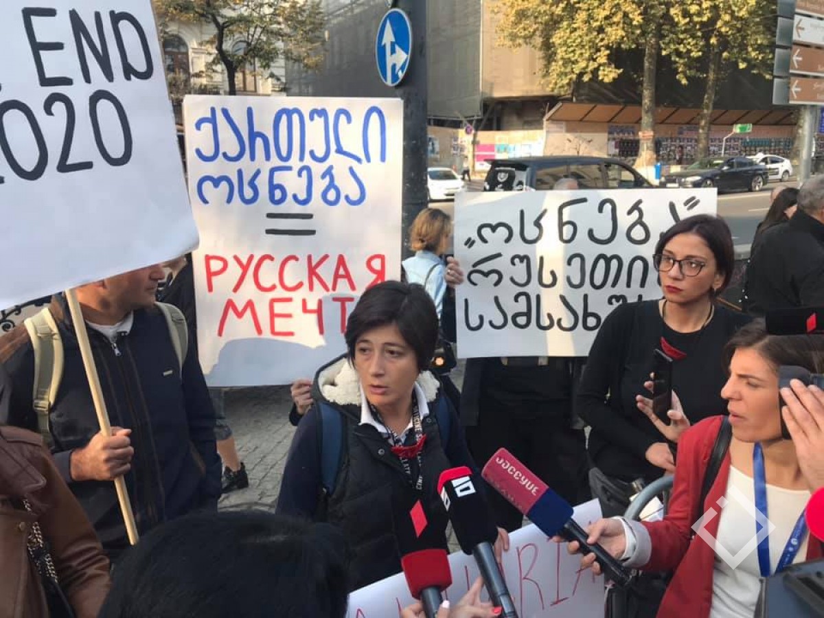 „თბილისის აბრეშუმის გზის ფორუმის'' პარალელურად სირცხვილიას აქცია იმართება. ოპერისა და ბალეტის ეროვნულ თეატრთან აქტივისტები პლაკატებით მივიდნენ: ''ქართული ოცნება რუსეთის სამსახურში'', ''რუსული ოცნება the end 2020'', ''ქართული ოცნება'' = რუსულ ოცნებას.