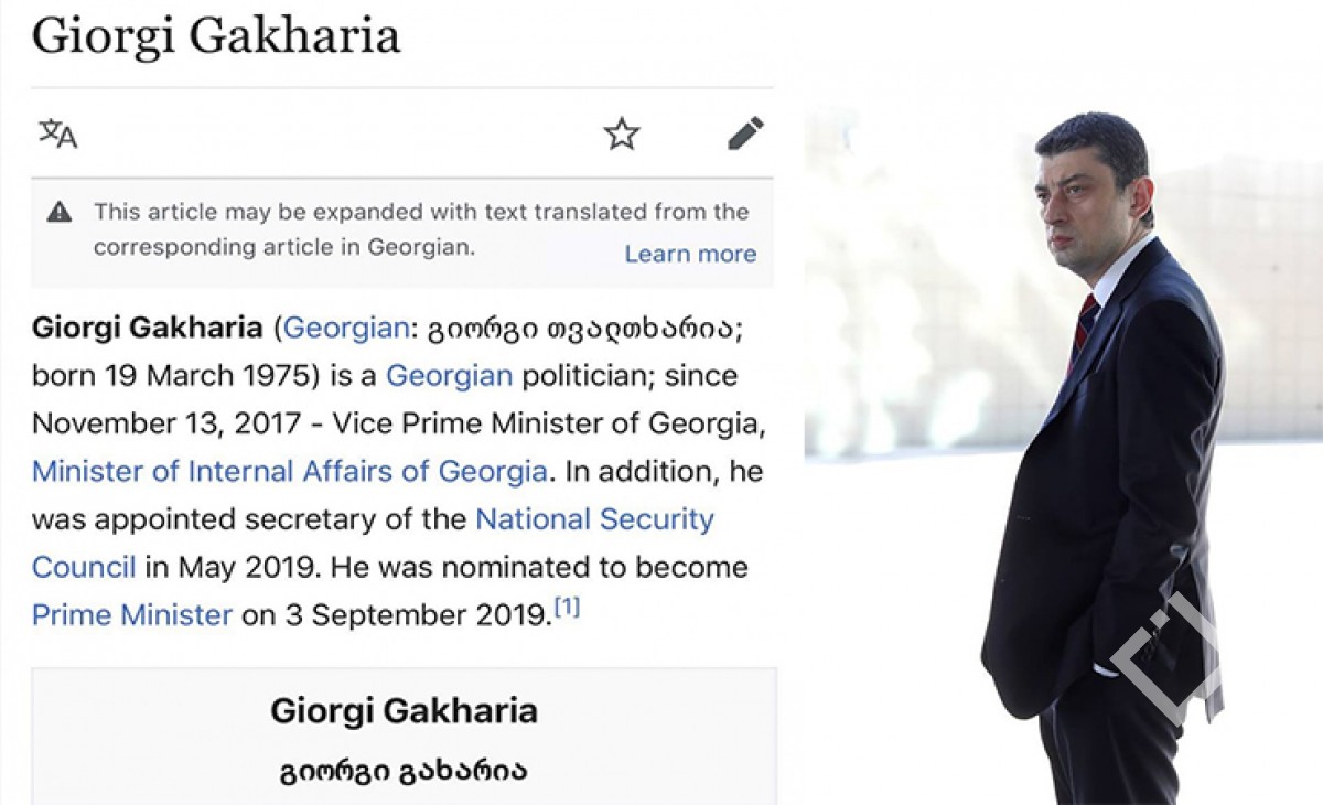ვიკიპედიაში, საქართველოს პრემიერ მინისტრის, გიორგი გახარიას შესახებ ინფორმაციაში თვალთხარია აღარ წერია.
