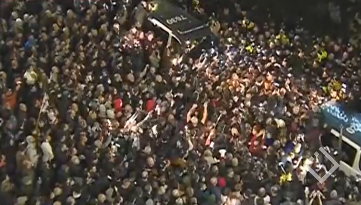 აქციის მონაწილეები კინოთეატრ ამირანთან, სავარაუდოდ, პიროტექნიკას აფეთქებენ. რამდენიმე წუთის წინ გასროლის ხმა ისმოდა.