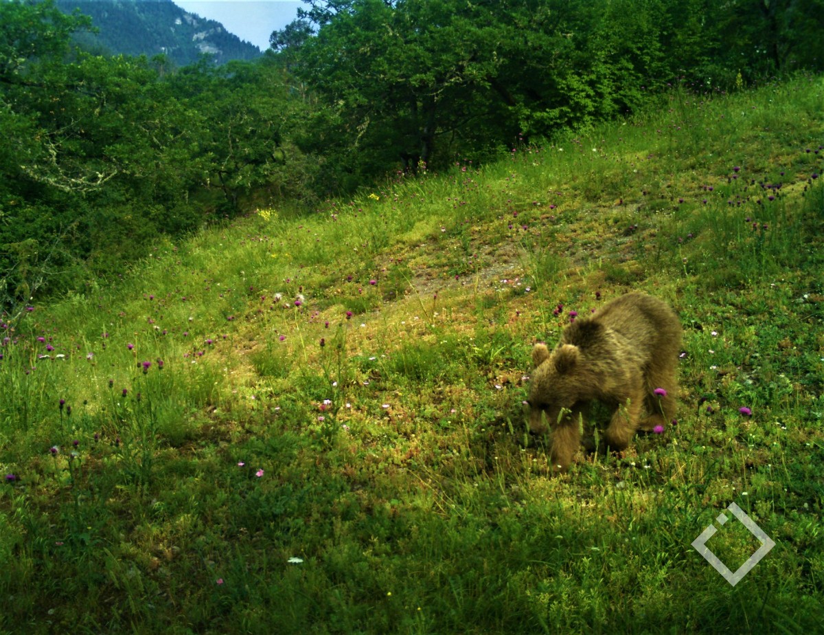მურა დათვი ბორჯომ-ხარაგაულის ეროვნული პარკიდან. ცხოველი ფოტო-ხაფანგმა დააფიქსირა.