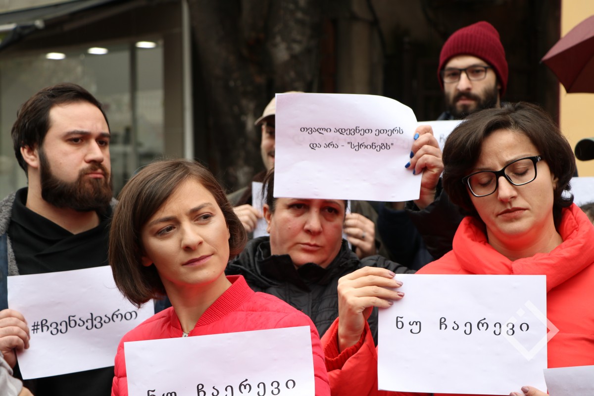 "ნუ ჩაერევი", "დაგვთვალე", "მე ჟურნალისტი ვარ და არა მსახიობი", "თვალი ადევნეთ ეთერს და არა სქრინებს"- ბანერებით მაუწყებლის თანამშრომლები სიმბოლურად ტელევიზიის შენობის წინ შეიკრიბნენ და ახალარჩეულ დირექტორს გიორგი კოხრეიძეს მოუწოდეს შეწყვიტოს დაუსაბუთებელი ბრალდებები, თვალთვალი, შანტაჟი, თანამშრომლებზე თავდასხმა და მათი დისკრედიტაცია.
