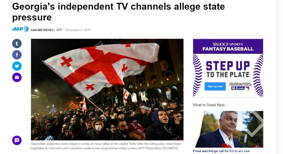 საქართველოში გავლენიანი ჟურნალისტები და მედიამენეჯერები საქართველოს ხელისუფლებას დამოუკიდებელი მედიის "მოხრჩობის" მცდელობაში ადანაშაულებენ - ამის შესახებ ფრანს პრესი წერს, რომელმაც საქართველოში მედიაგარემოს შესახებ წერილი გამოაქვეყნა.