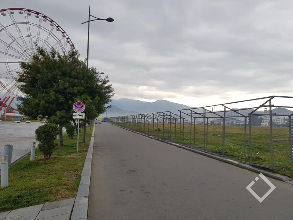 ბათუმის რივიერაზე, სადაც 5 ცათამბჯენის მშენებლობა იგეგმება ტერიტორია შემოიღობა. რკინის კონსტრუქციები და ღობე სანაპიროს მხრიდან, ეშმაკის ბორბლის მიმართულებით, ნაწილობრივ არის გაკეთებული.