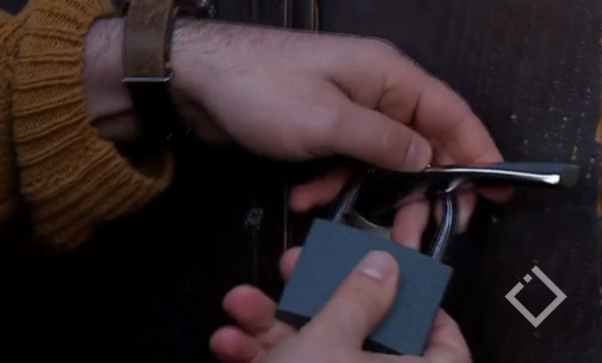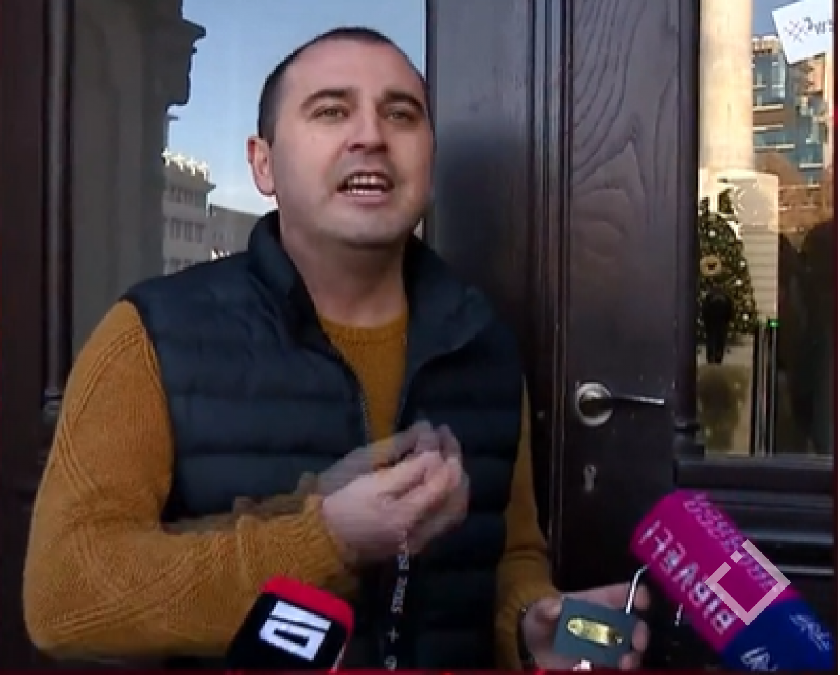 საკრებულოს წევრმა "ერთიანი ნაციონალური მოძრაობიდან" ლევან ხაბეიშვილმა საკრებულოს შესასვლელს ბოქლომი დაადო.