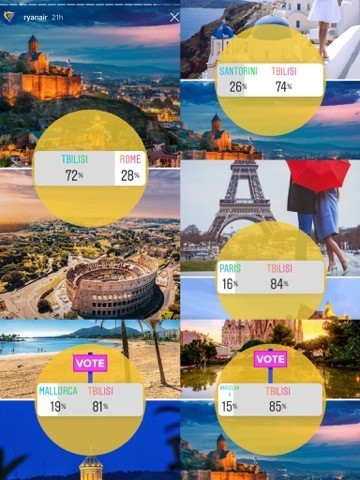 ინსტაგრამ სთორზე თბილისის საპირწონედ იყვნენ; რომი, სანტორინი და პარიზი და კუნძული მალიორკა მიცემა კი, სოციალური ქსელის მომხმარებლებს შეეძლოთ.