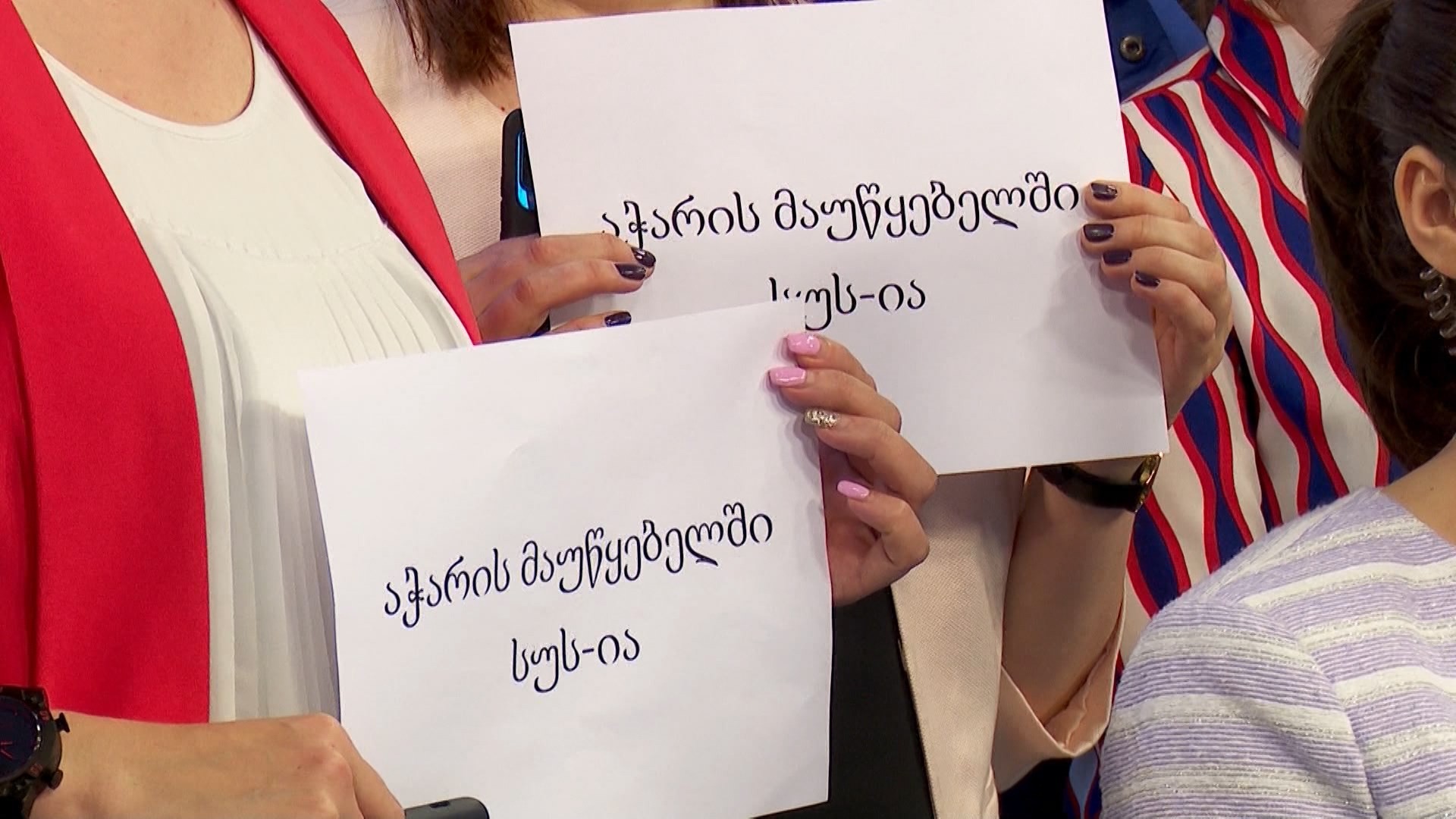მაუწყებელში სუს-ია ამ სლოგანით, აჭარის მაუწყებლის ჟურნალისტებმა პირდაპირ ეთერში, პროტესტი ერთ წუთიანი დუმილით გამოხატეს.
