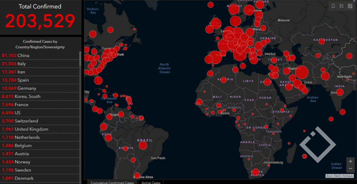 მსოფლიოში კორონავირუსით ინფიცირებულთა რიცხვმა 200 ათასს გადააჭარბა. მათგან 8 ათასი ადამიანი დაიღუპა. გამოჯანმრთელდა 80 ათასზე მეტი. ვირუსი 157 ქვეყანაშია გავრცელებული. დღეს ყველაზე საგანგაშო მდგომარეობა ევროპაშია.