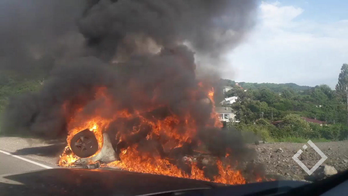 ბათუმში, გვირაბის შესასვლელთან ავტოსაგზაო შემთხვევის შედეგად, მსუბუქი ავტომანქანა ამოტრიალდა და დაიწვა.