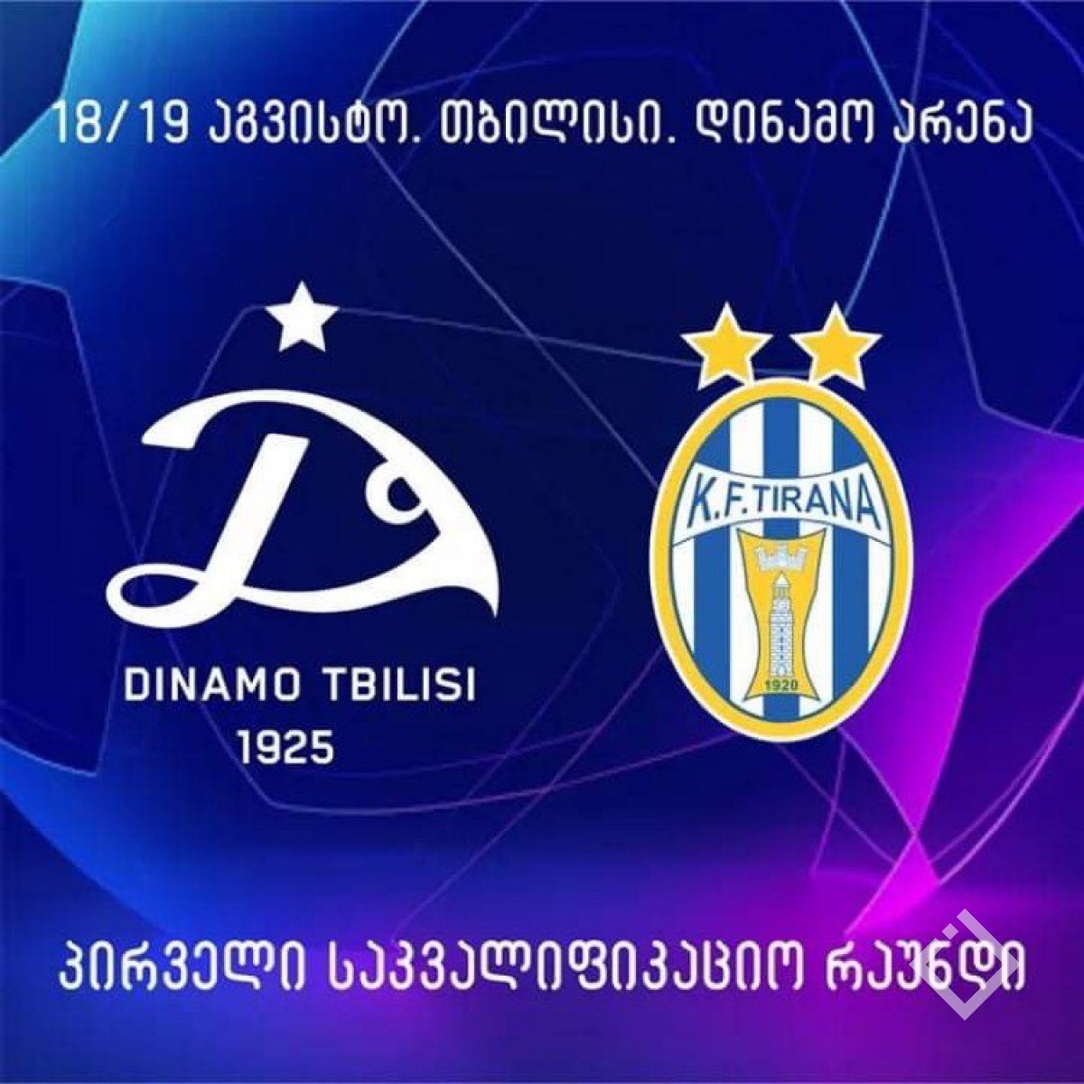 დინამო თბილისი ჩემპიონთა ლიგის პირველ საკვალიფიკაციო რაუნდში ალბანეთის ჩემპიონ ტირანას უმასპინძლებს. მატჩი 18 ან 19 აგვისტოს შედგება დინამო არენაზე, სამწუხაროდ გულშემატკივრის გარეშე.