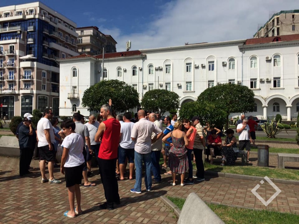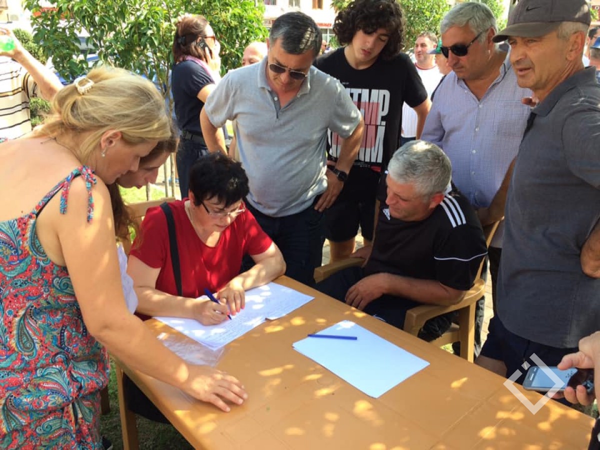 საოჯახო სასტუმროების მფლობელები, რომლებსაც საბანკო ვალდებულებები აქვთ მერიის წინ მდებარე სკვერში, ხელმოწერებს და პირად მონაცემებს აგროვებენ, რომელსაც კანცელარიაში შესატანად ამზადებენ.