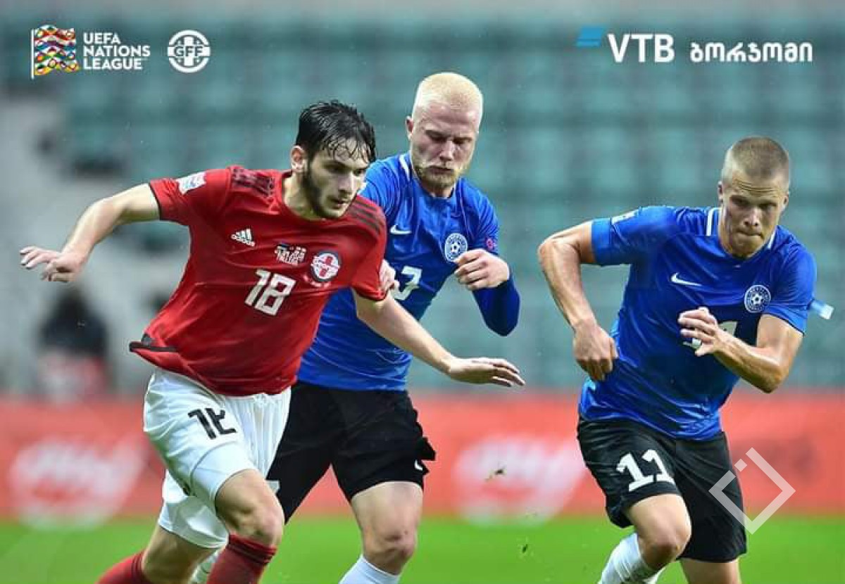 ვლადიმერ ვაისის გაწვრთნილმა ნაკრებმა გასვლაზე ესტონეთი მინიმალური სხვაობით 1-0 დაამარცხა. ერთადერთი გოლი შეხვედრის 32-ე წუთზე კვარაცხელიას ჩაწოდების შემდეგ კაჭარავამ თავური დარტყმით გაიტანა.